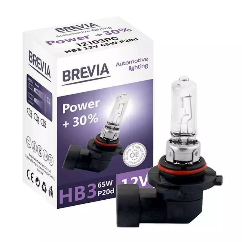 Лампа галогенная цоколь HB3 Brevia Power +30% 1шт (12103PC)
