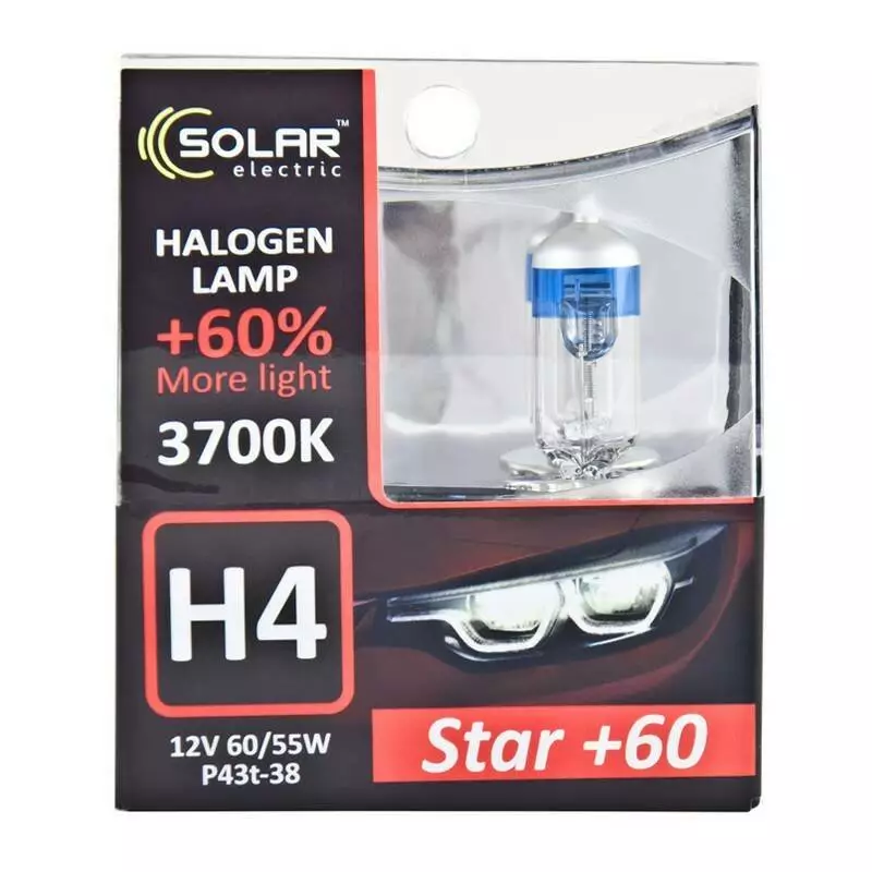 Лампы галогенные цоколь H4 Solar + 60%, SET 2шт (1234S2)