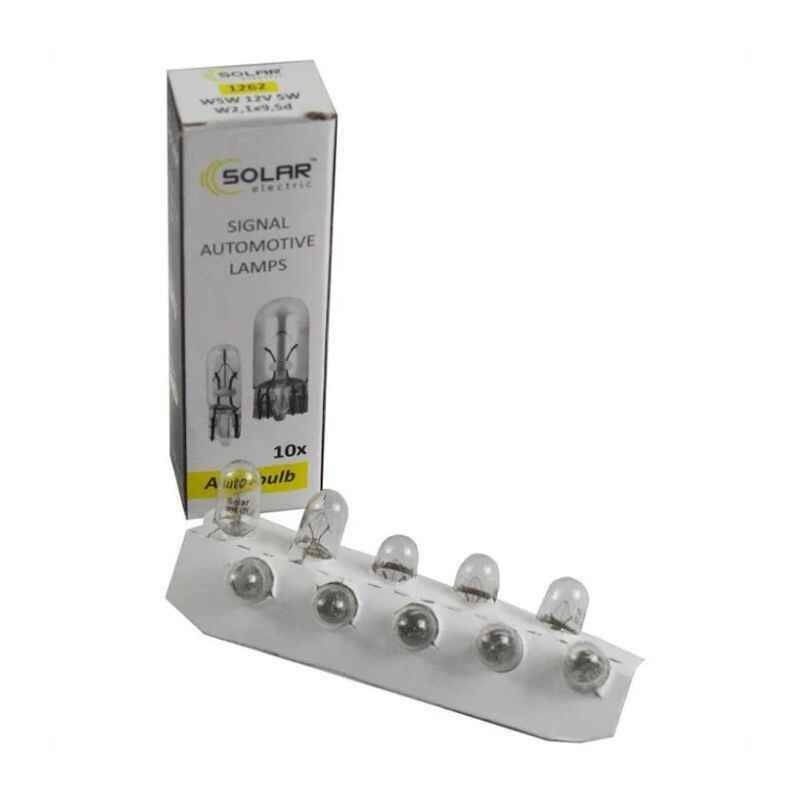 Лампы галогенные W5W Solar 12V 10 штук (одна упаковка) (1262)