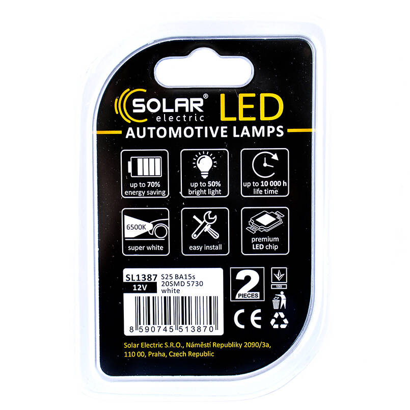 LED автолампа SOLAR 12V S25 BA15s 20SMD white, 2шт (SL1387)