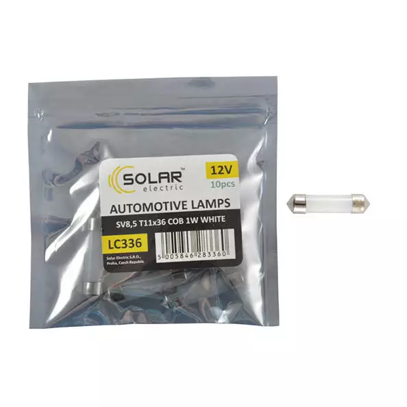 LED автолампа SOLAR 12V SV8.5 T11x36 1COB 1W white 10шт (LC336_P)