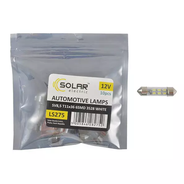 LED автолампа SOLAR 12V SV8.5 T11x36mm 6smd 3528 white 10шт