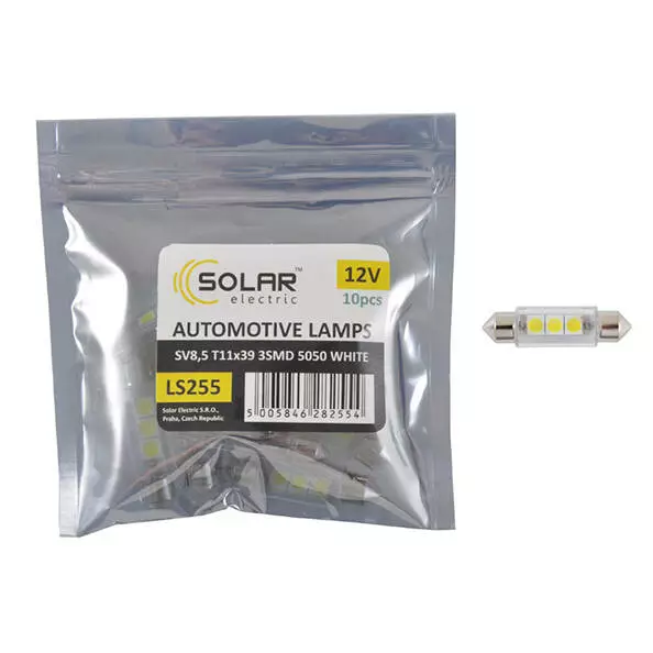 LED автолампа SOLAR 12V SV8.5 T11x39 3smd 5050 white 10шт (LS255_P)