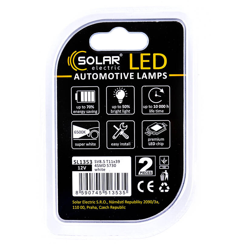 LED автолампа SOLAR 12V SV8.5 T11x39 4SMD white, 2шт (SL1353)