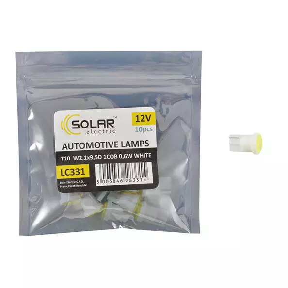 LED автолампа SOLAR 12V T10 W2.1x9.5d 1COB 48LM white 10шт (LC331_P)