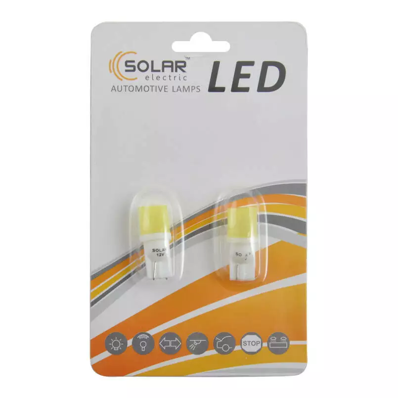 LED автолампа SOLAR 12V T10 W2.1x9.5d 1COB white, 2шт (LC343_B2)