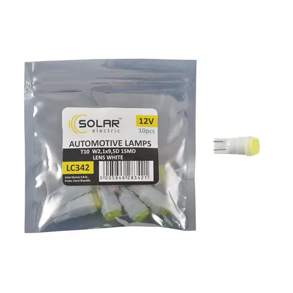 LED автолампа SOLAR 12V T10 W2.1x9.5d 1SMD with lens white 10шт (LC342_P)