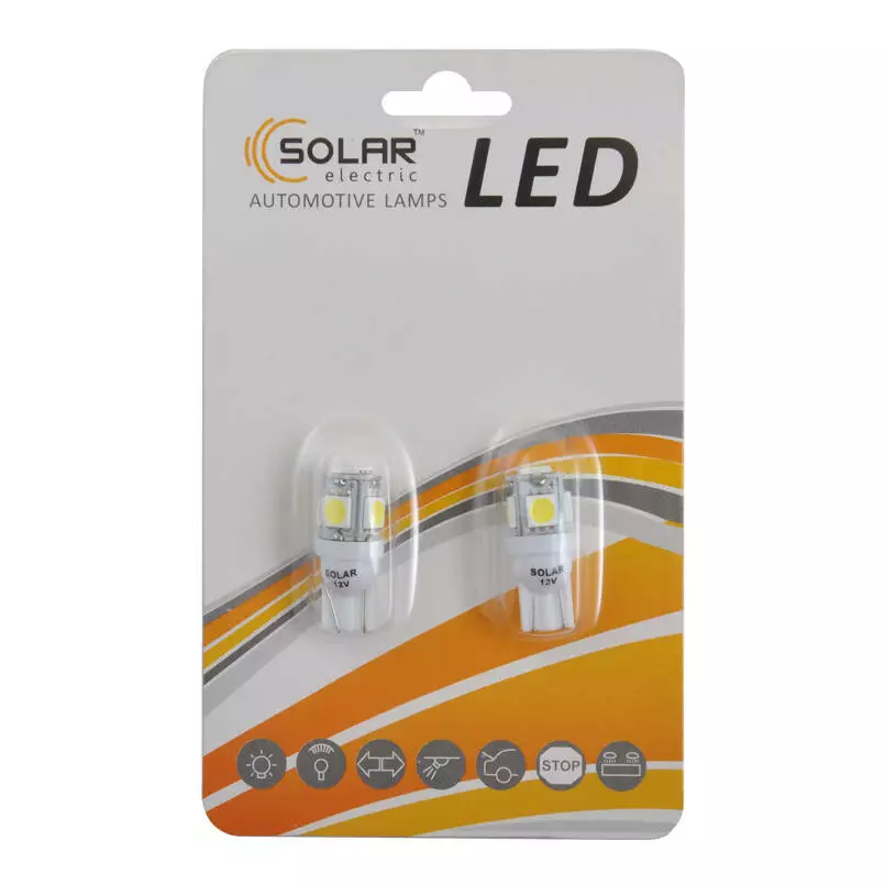LED автолампа SOLAR 12V T10 W2.1x9.5d 5smd 5050 white, 2шт