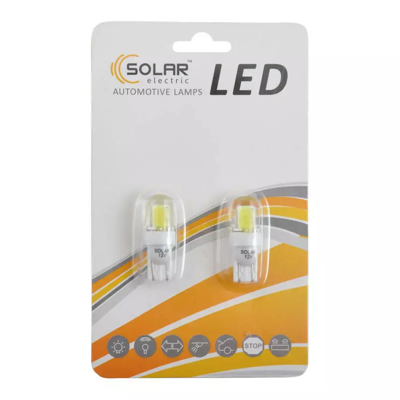 LED автолампа SOLAR 12V T10 W2.1x9.5d COB 70lm white, 2шт