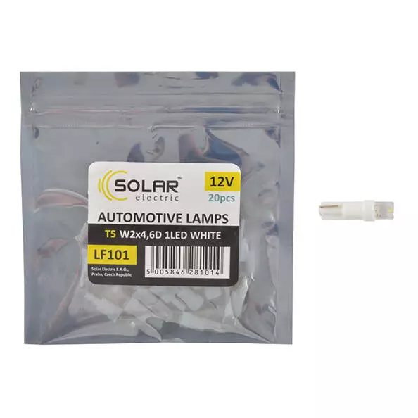 LED автолампа SOLAR 12V T5 W2x4.6d 1leds white 20шт (LF101_P)