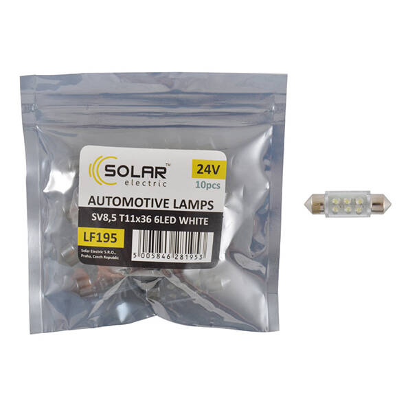 LED автолампа SOLAR 24V SV8.5 T11x36 6leds white 10шт (LF195_P)