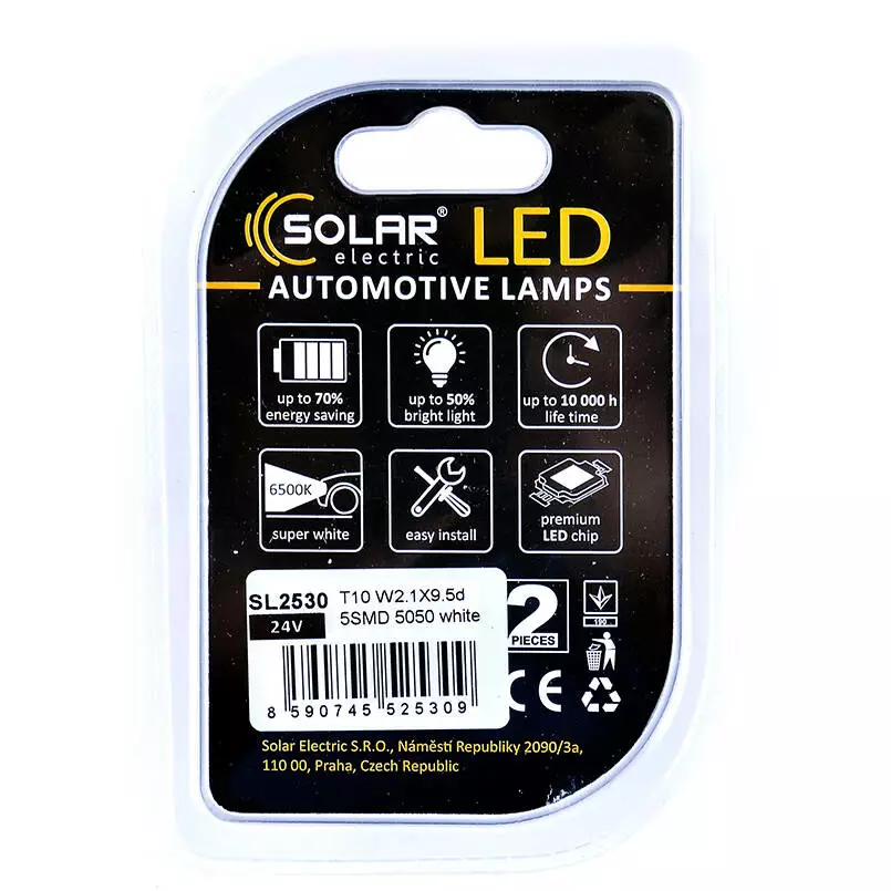 LED автолампа SOLAR 24V T10 W2.1x9.5d 5SMD white, 2шт (SL2530)