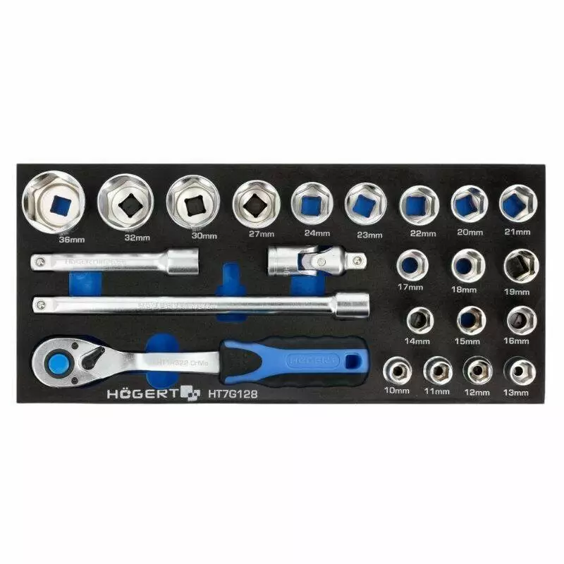 Ложемент с инструментами Hogert 23 предмета с трещоткой 1/2 дюйма HT7G128 EVA