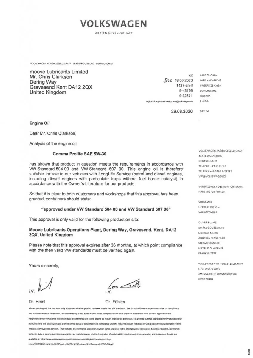 - Допуски ОЕМ: VW 504.00, VW507.00, MB 229.51, BMW LONGLIFE-04, PORSCHE C30