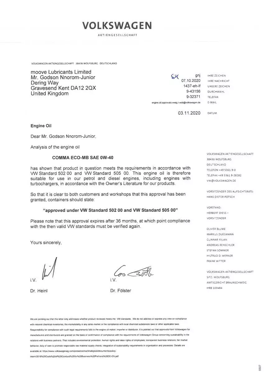 - Допуски ОЕМ: Ford WSS-M2C937-A, MB226.5, MB229.5, Porsche A40, Renault RN0700,Renault RN0710,VW 502.00, VW 505.00