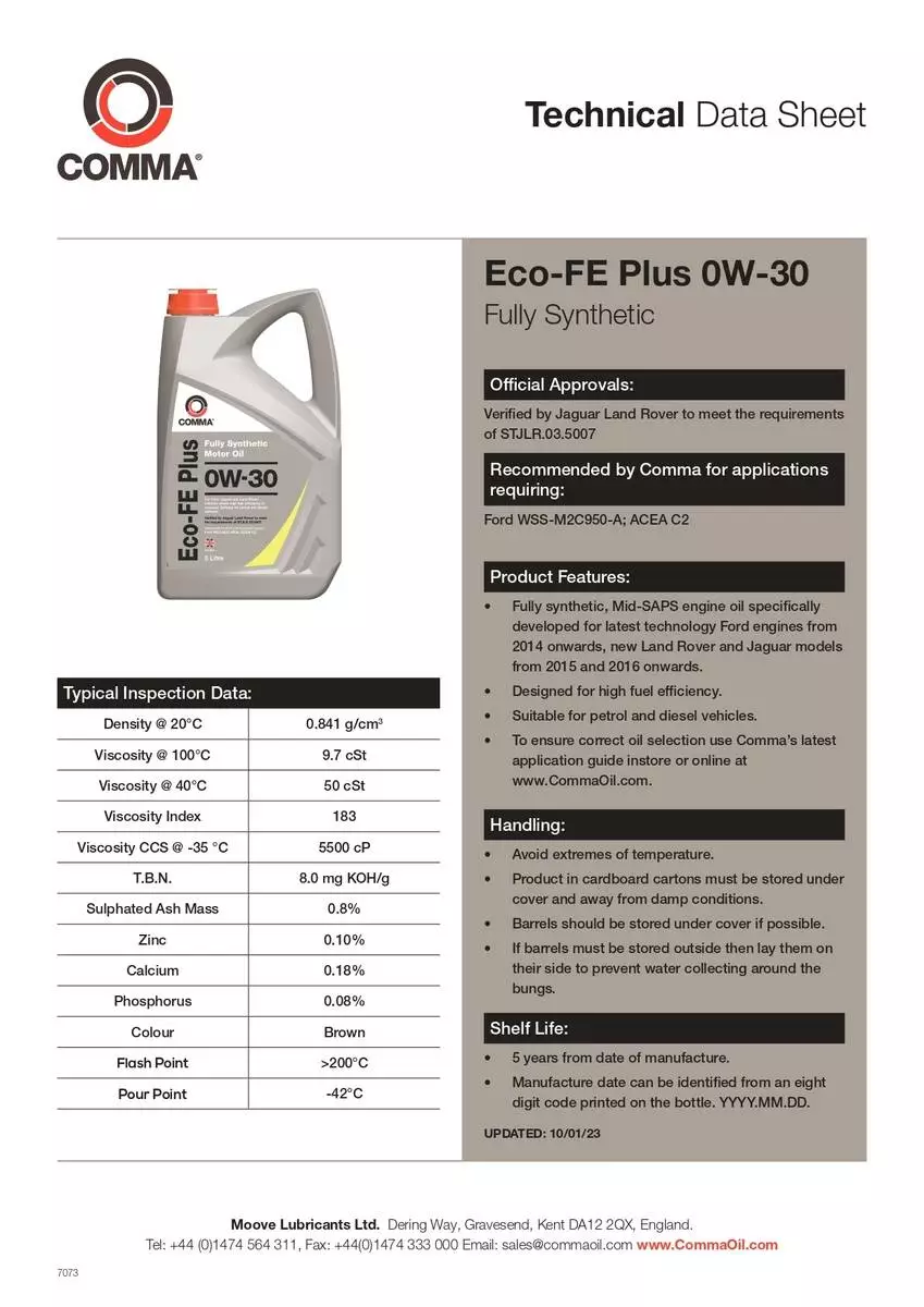 Моторное масло Comma ECOFEPLUS 0W-30 ACEA C2 199л (1шт/уп)