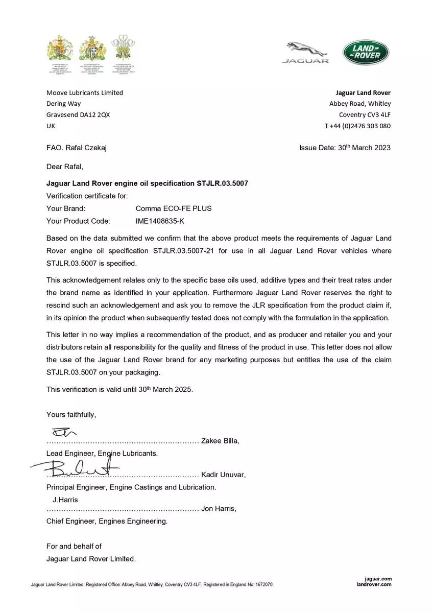- Допуски ОЕМ: Land Rover STJLR.03.5007, Ford WSS-M2C950-A