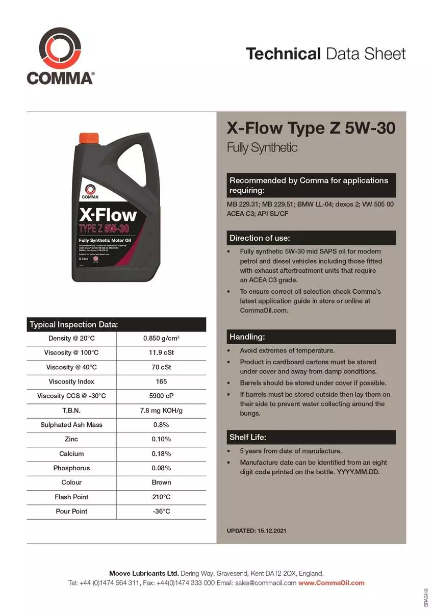 Моторное масло Comma X-FLOW TYPE Z 5W-30 API SL/CF; ACEA C3 1л (12шт/уп)
