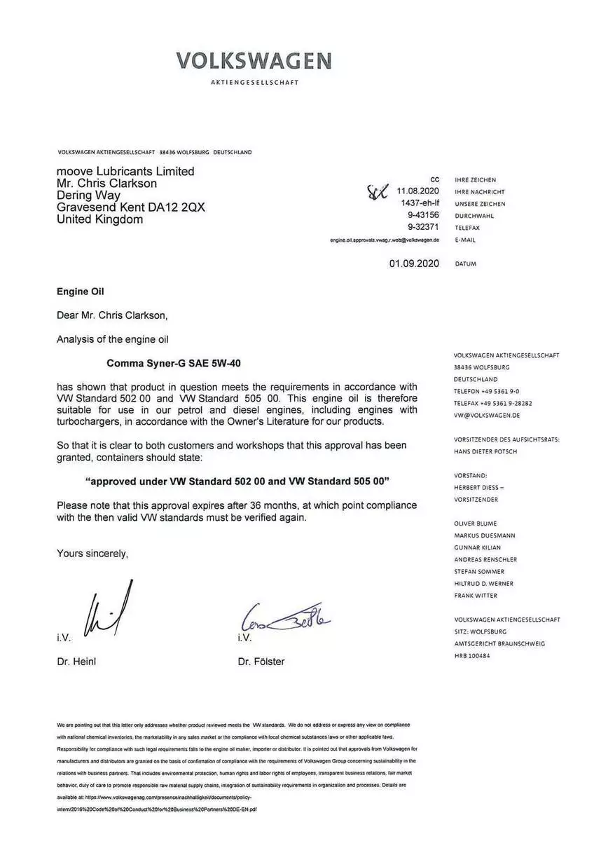 - Допуски ОЕМ: MB 226.5, MB 229.1, MB 229.3, PSA B71 2296, Porsche A40, VW 502.00, VW 505.00