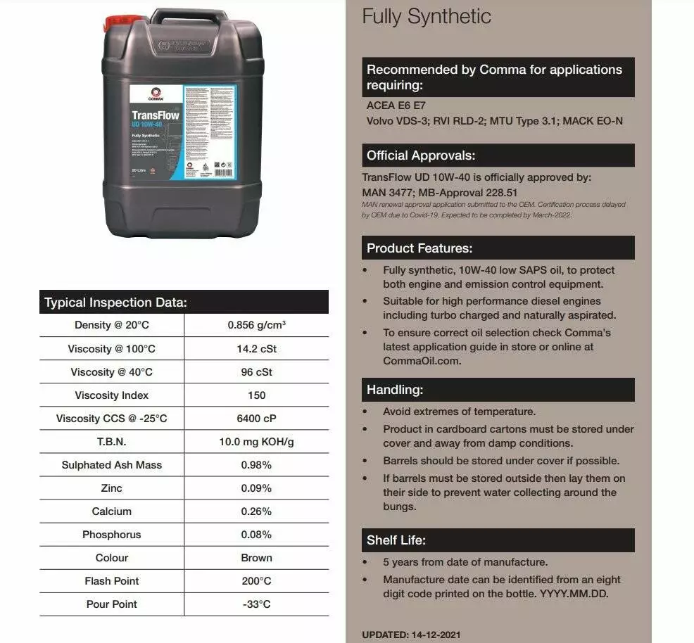 Моторное масло Сomma TRANSFLOW UD 10W-40 API CI-4; ACEA E6/E7 20л (1шт/уп)