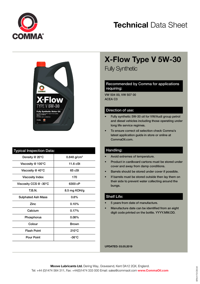 Моторное масло Сomma X-FLOW TYPE V 5W30 ACEA C3 1л (12шт/уп)