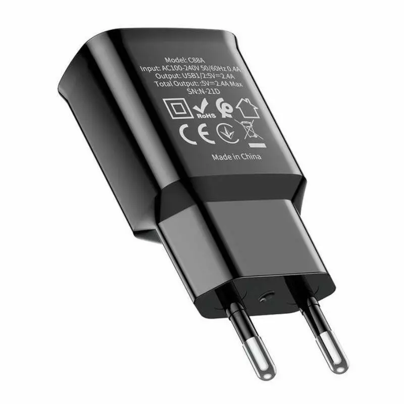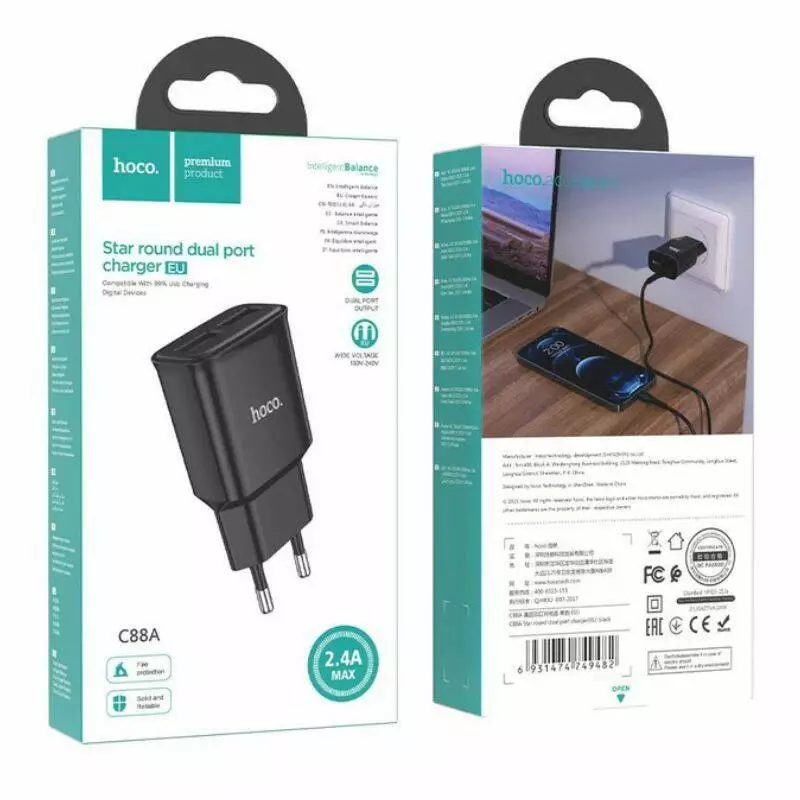 <h2>Сетевая зарядка 2.4A 2USB Hoco C88A черная: