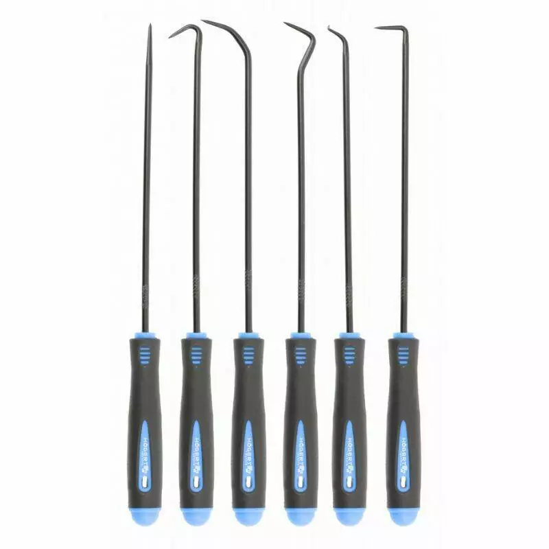 Каждый крючок в наборе имеет свою форму и размер для различных операций. Все ручки имеют нескользящую поверхность. Длина инструментов позволяет добраться до труднодоступных участков. Крючки прочные, не деформируются под нагрузкой. Это необходимый набор для мастеров, которые часто работают с уплотнителями, сальниками и шлангами. Инструмент подходит для использования в автосервисах и при ремонте дома.