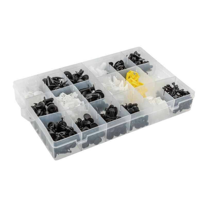 <p>Все клипсы размещены в удобной пластиковой коробке с отдельными отделениями для каждого вида. Это обеспечивает быстрый доступ к нужным элементам и сохраняет порядок в рабочем процессе. Набор позволяет выполнять широкий спектр работ по ремонту салона и кузова, включая установку и замену обшивки, фиксацию декоративных панелей и других элементов.</p>