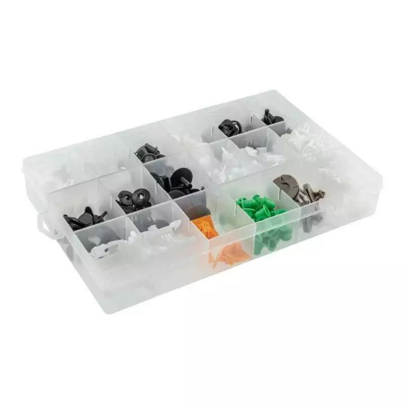 <p>В комплекте 160 клипс 12 разных видов, что позволяет выполнять различные работы с обшивкой салона и элементами кузова. Набор станет полезным во время планового обслуживания, замены обшивки или восстановления элементов после ремонта. Подходит для использования как мастерами, так и владельцами автомобилей, которые хотят самостоятельно ухаживать за своим транспортным средством.</p>