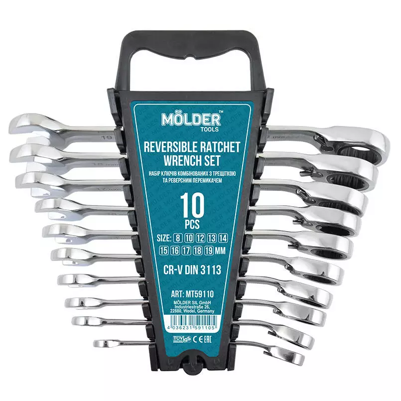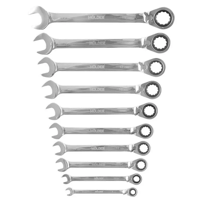 Набор ключей 10 шт комбинированных MOLDER CR-V (8-10-12-13-14-15-16-17-18-19 мм) с трещоткой и реверсом (MT59110)