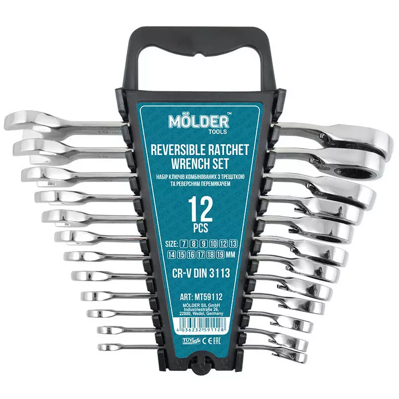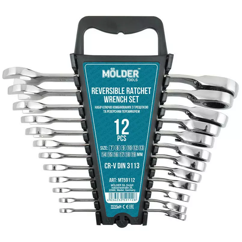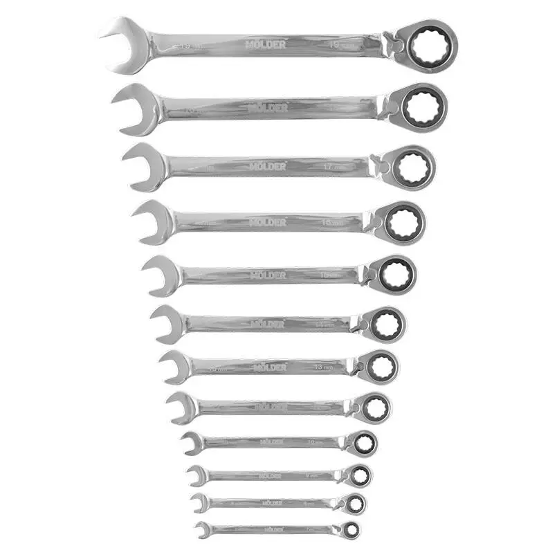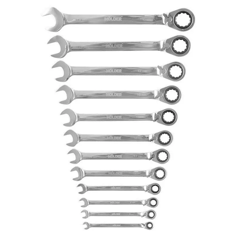 Набор ключей 12 шт комбинированных MOLDER CR-V (7-8-9-10-12-13-14-15-16-17-18-19 мм) с трещоткой и реверсом (MT59112)