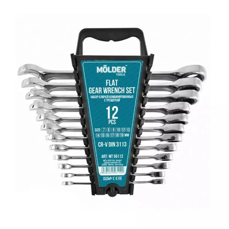 Набор комбинированных ключей MOLDER с трещоткой CR-V 7-19 мм 12 шт (MT56112)