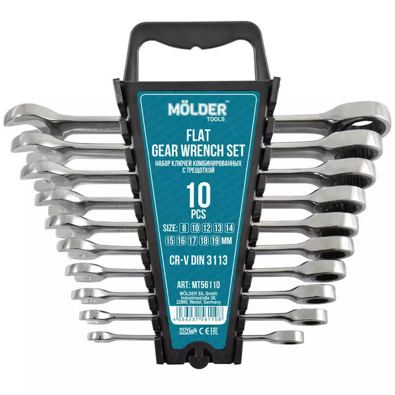 Набор комбинированных ключей MOLDER с трещоткой CR-V 8-19 мм 10 шт (MT56110)
