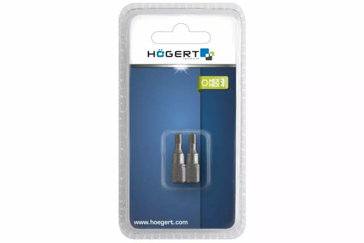 Набор коротких бит HEX 3 и HEX 4 25мм из стали S2 2 штуки Hogert (HT1S359)