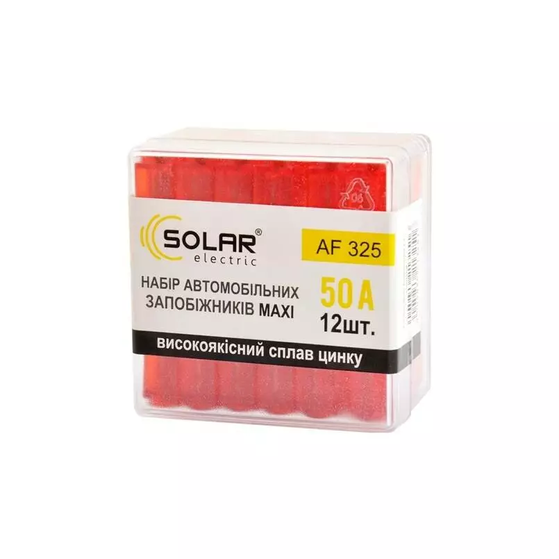 Набор предохранителей MAXI 50А 12шт Solar сплав цинка (AF325)