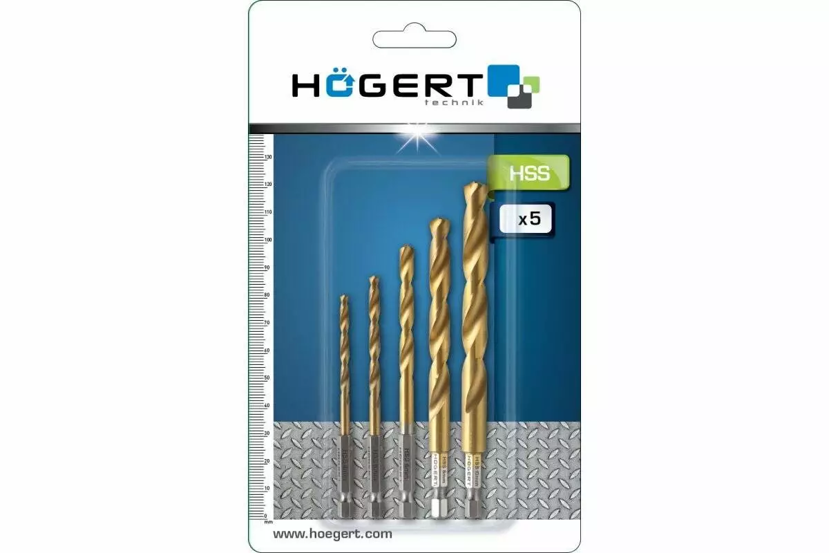 Набор сверл Hogert HT6D180 по металлу с шестигранным хвостовиком Co5% 2 3 4 5 6 мм 5 штук