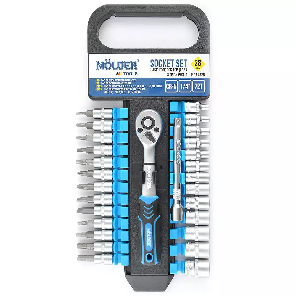 Набор торцевых головок с трещ. и удлин. Molder 1/4" 72Т, CR-V, 28шт