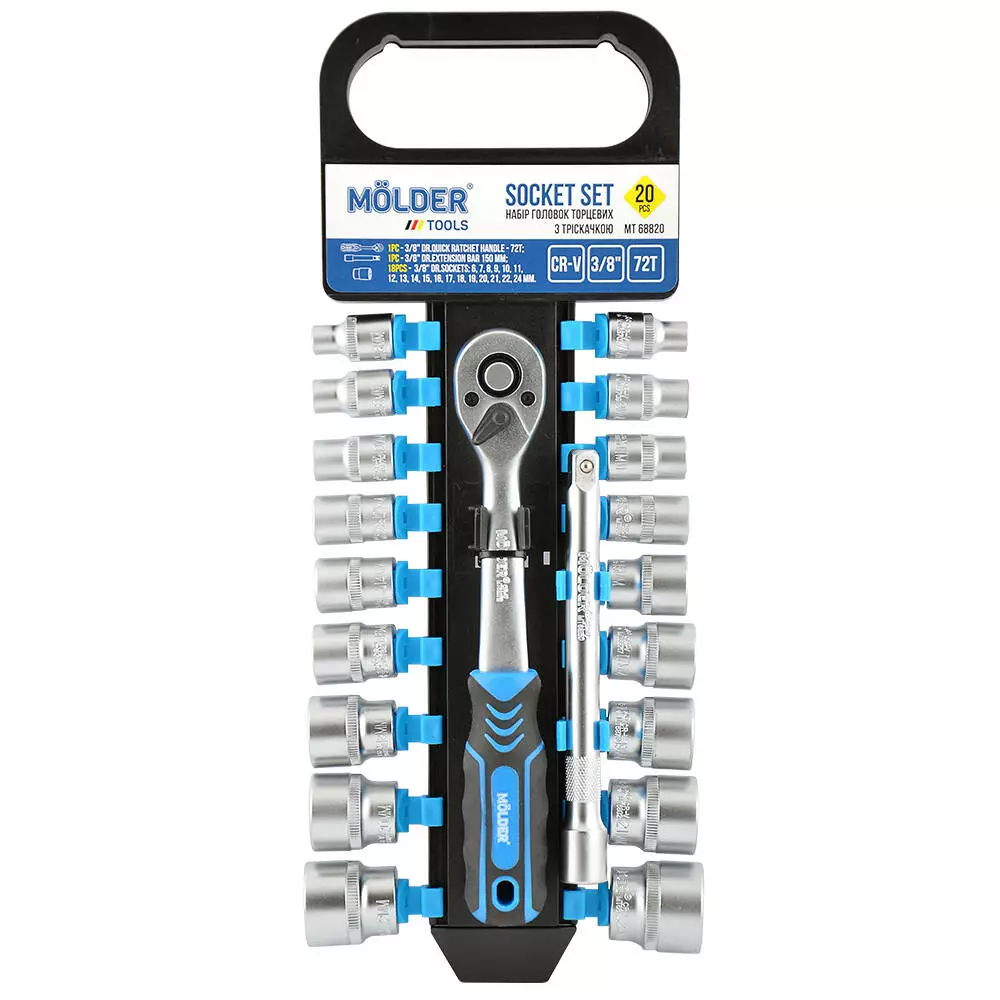 Набор торцевых головок с трещ. и удлин. Molder 3/8" 72Т, CR-V, 6-24 мм, 20шт