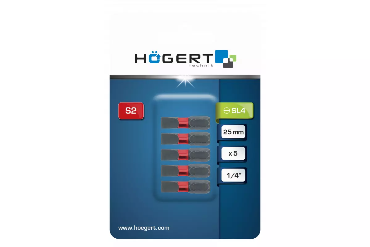 Набор ударных бит SL4 25 мм из стали S2 5 штук Hogert (HT1S130)