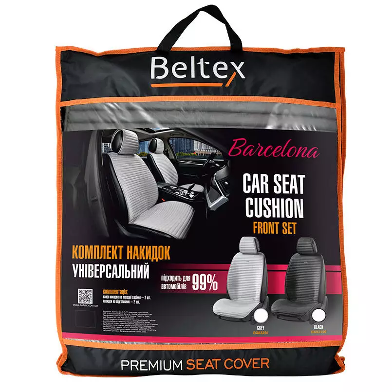 Накидки на сиденья авто передние 2+2 премиум класса Beltex Barcelona авточехлы универсальные комплект серый (BX83250)
