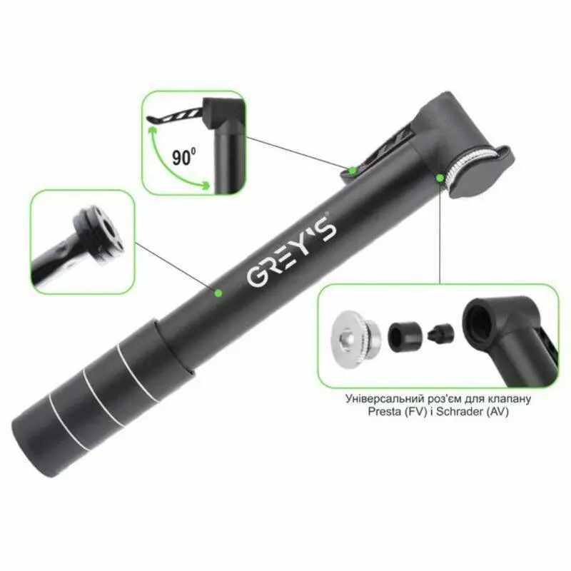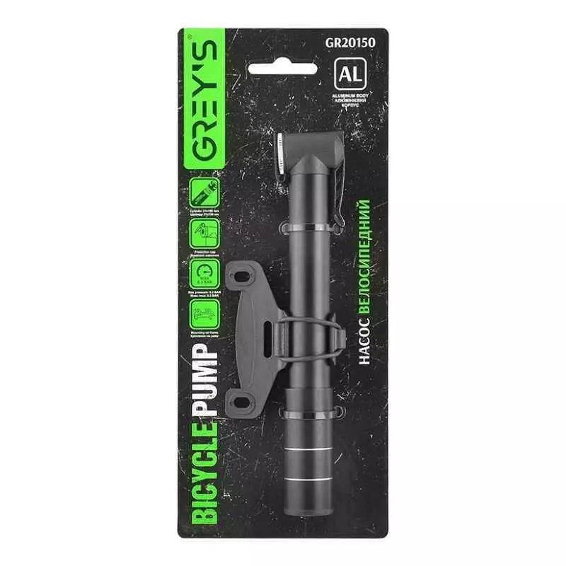 Насос для велосипеда портативный 195мм 8Атм Grey's ручной алюминиевый черный (GR20150)