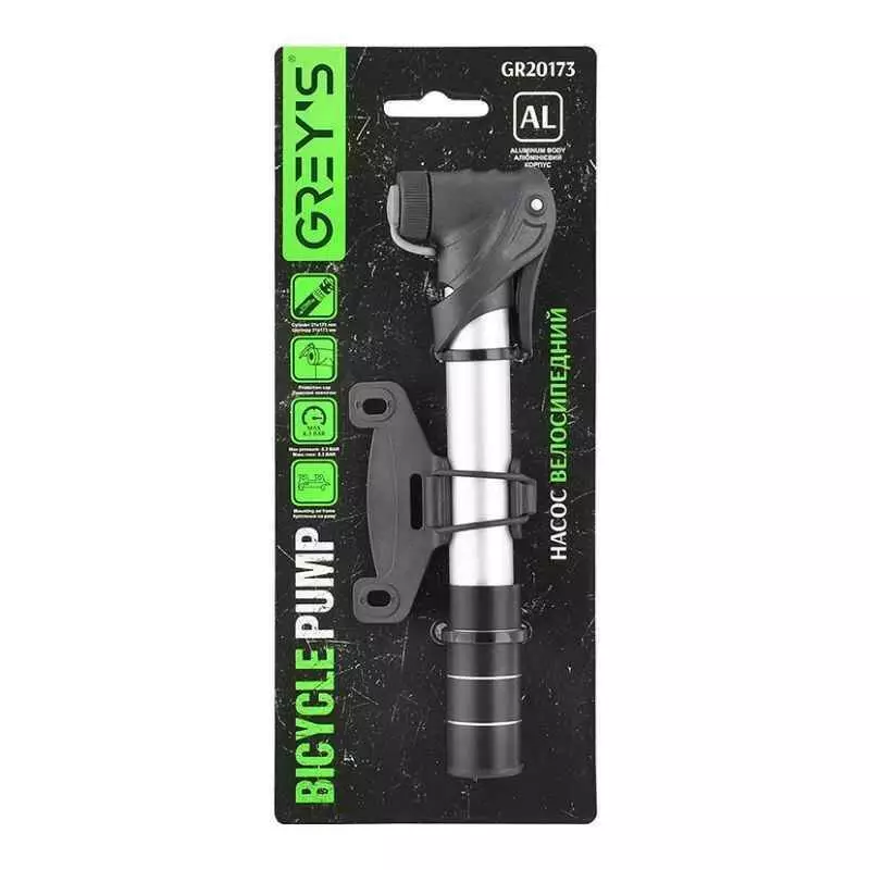 Насос для велосипеда портативный 200мм 8Атм Grey's ручной алюминиевый черный (GR20173)