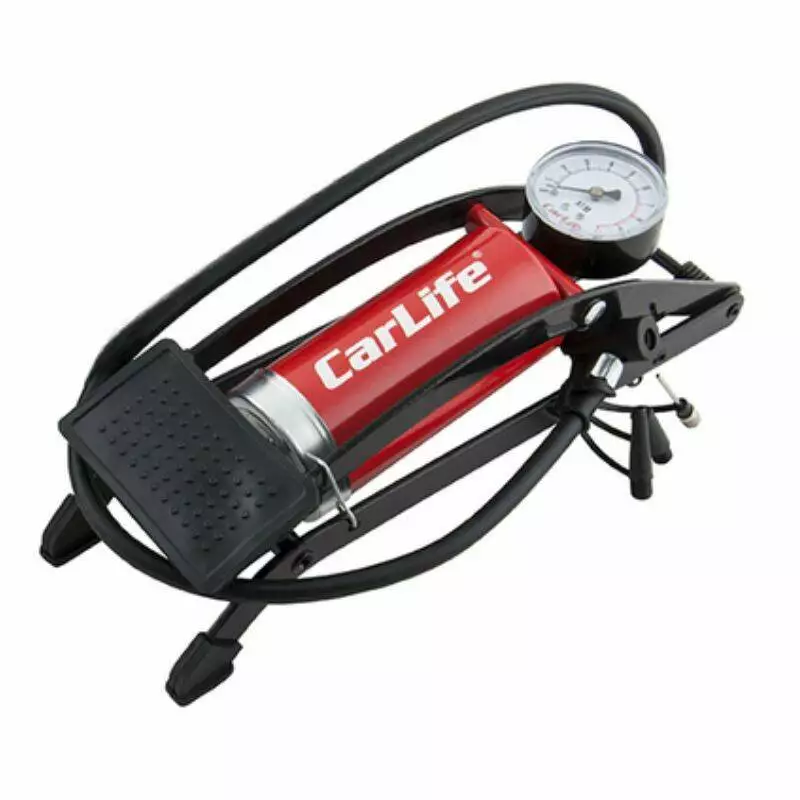 Насос ножной CARLIFE 55ммx120мм, один цилиндр с манометром и дополнительными адаптерами, 10 Атм