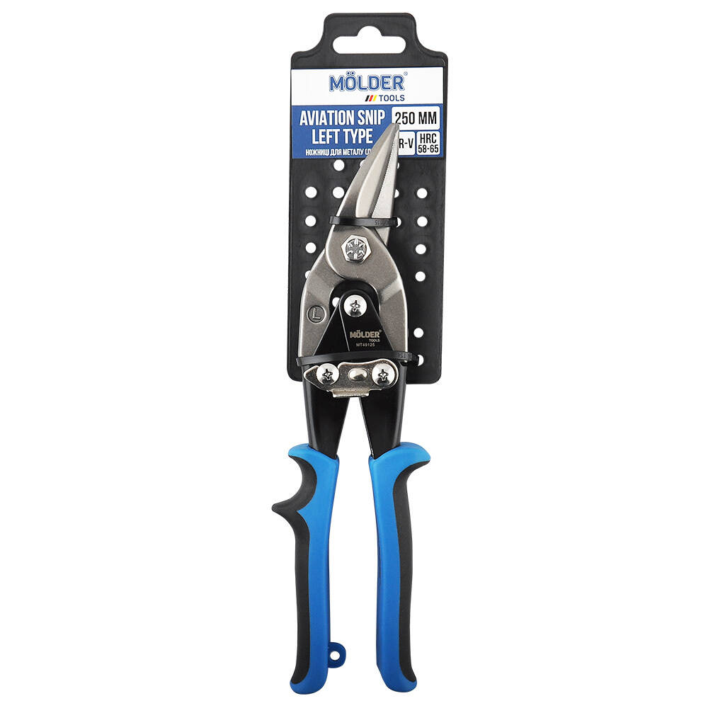 <p>Ножиці по металу ліві MOLDER 250мм, 60Cr-V, HRC 58-65,