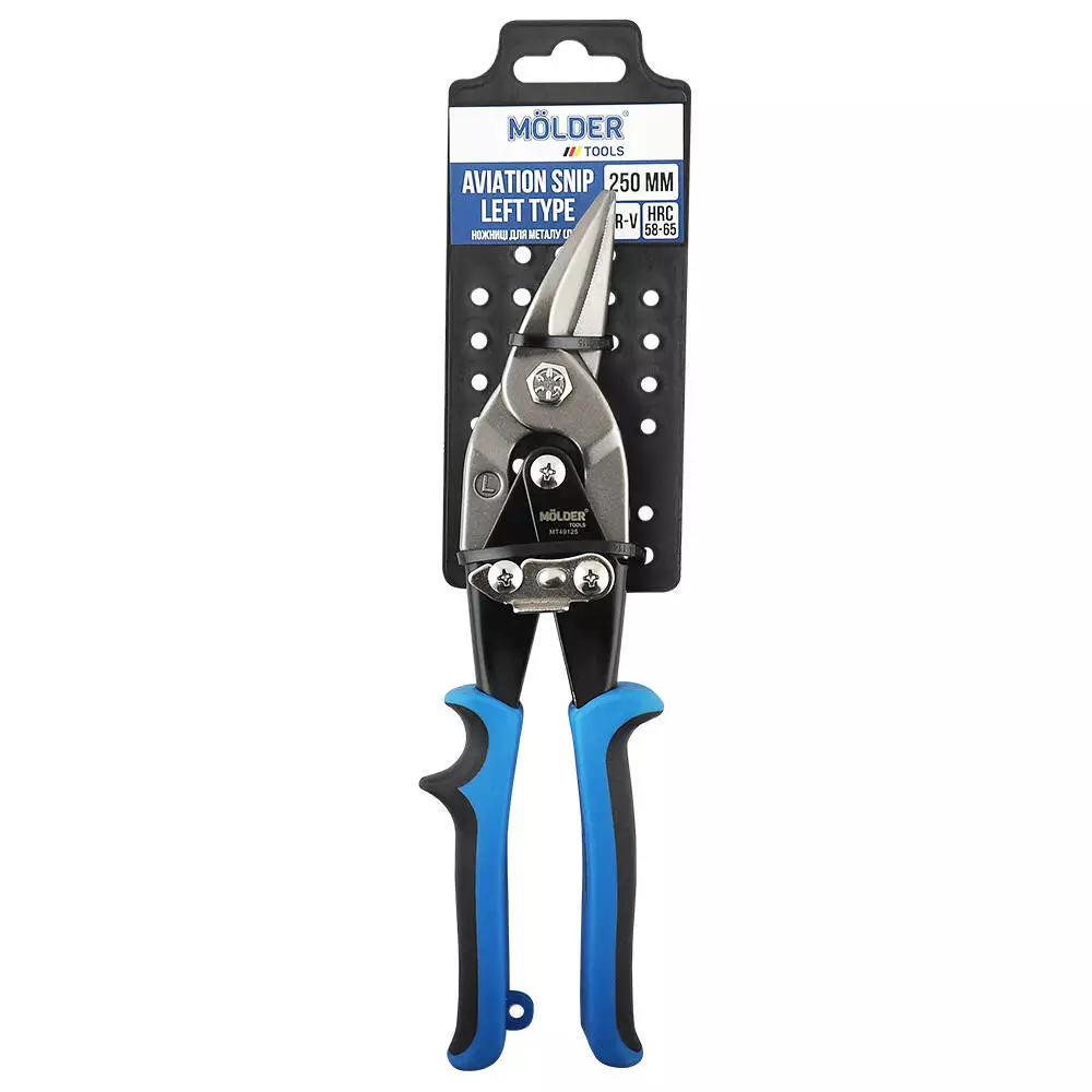 Ножиці по металу ліві MOLDER 250мм, 60Cr-V, HRC 58-65, поліровані, двокомпонентна (48шт/ящ)