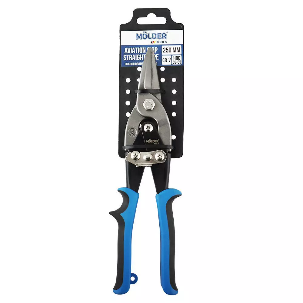 Ножиці по металу прямі MOLDER 250мм, 60Cr-V, HRC 58-65, поліровані, двокомпонентна (48шт/ящ)