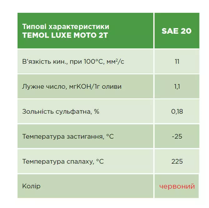 Олива TEMOL LUXE Moto 2Т SAE 20,API TC,JASO FD/FC,ISO EGD/EGC (1 л)