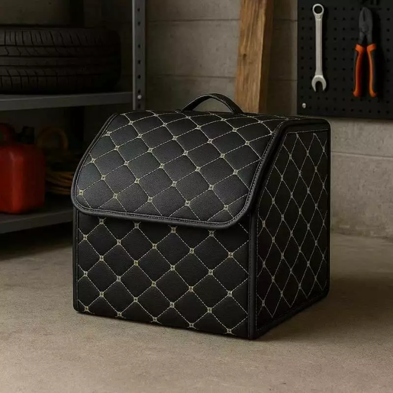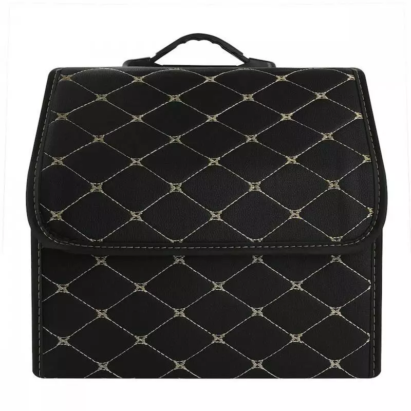 Органайзер в багажник автомобиля 34см*30см*30см черный с бежевой строчкой