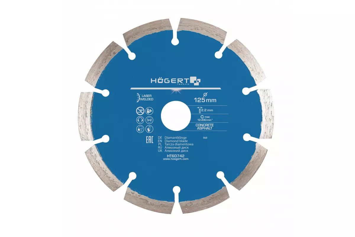 Отрезной алмазный диск Turbo 125x2.2x22.2 мм для болгарки Hogert (HT6D742)