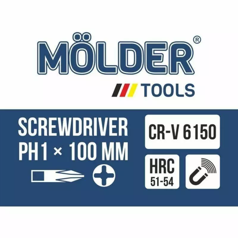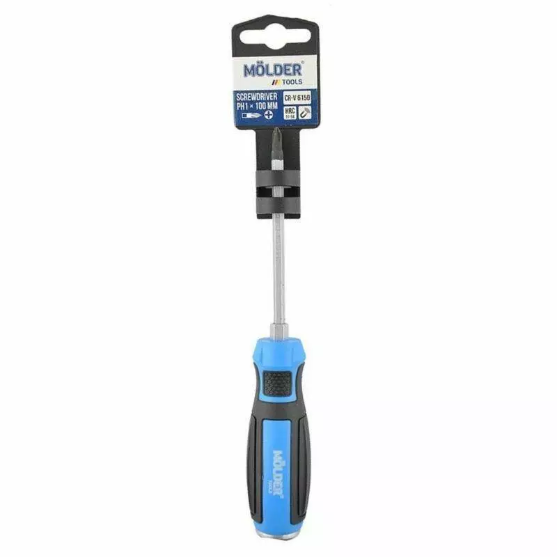 Отвертка крестовая, ударная с шестигранной опорой Molder, PH1x100mm (12шт/уп)
